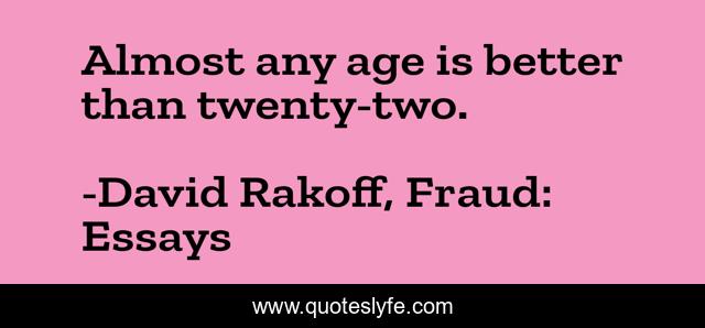 This page presents the quote "Almost any age is better than twenty-two.". Author of this quote is David Rakoff, Fraud: Essays. This quote is about ageing, age,.