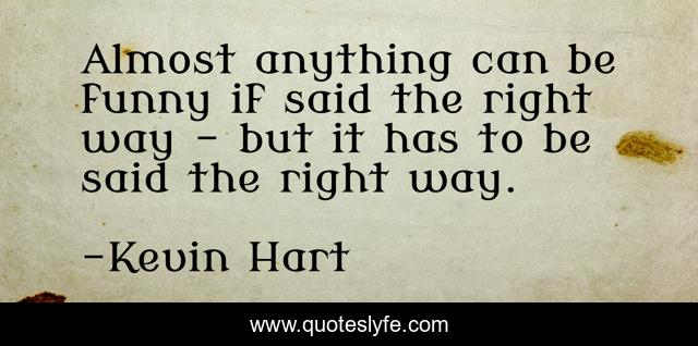 This page presents the quote "Almost anything can be funny if said the right way - but it has to be said the right way.". Author of this quote is Kevin Hart. This quote is about said, right, way,.