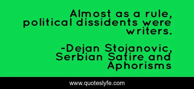This page presents the quote "Almost as a rule, political dissidents were writers.". Author of this quote is Dejan Stojanovic, Serbian Satire and Aphorisms. This quote is about dejan-stojanovic, writers, political-dissidents, serbian-satire-and-aphorisms,.