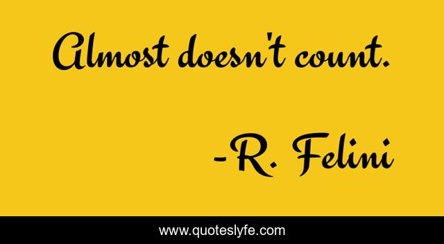 "R. Felini Quotes." Quoteslyfe.com, 2025. Fri. 05 Dec. 2025. <https://www.quoteslyfe.com/quote/Almost-doesn-t-count-193426>.