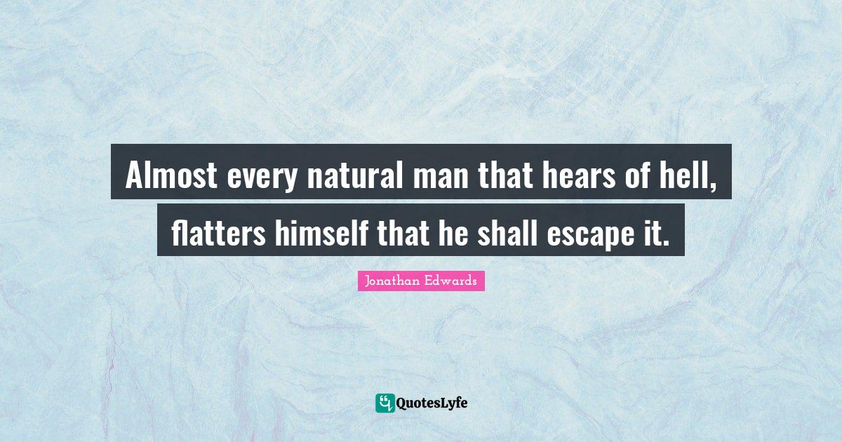 This page presents the quote "Almost every natural man that hears of hell, flatters himself that he shall escape it.". Author of this quote is Jonathan Edwards. This quote is about natural, men, hell,.