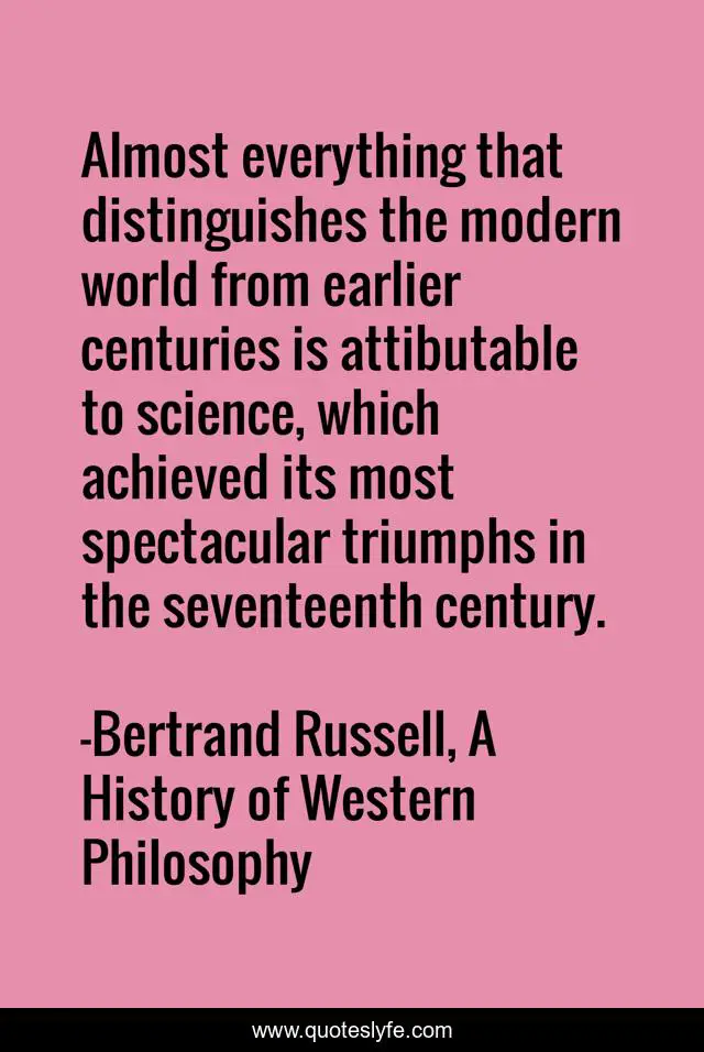 "Bertrand Russell, A History of Western Philosophy Quotes." Quoteslyfe.com, 2025. Mon. 08 Dec. 2025. <https://www.quoteslyfe.com/quote/Almost-everything-that-distinguishes-the-modern-world-7476>.