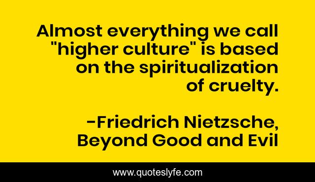 "Friedrich Nietzsche, Beyond Good and Evil Quotes." Quoteslyfe.com, 2025. Sun. 07 Dec. 2025. <https://www.quoteslyfe.com/quote/Almost-everything-we-call-higher-culture-is-257527>.