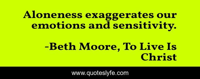 "Beth Moore, To Live Is Christ Quotes." Quoteslyfe.com, 2025. Fri. 05 Dec. 2025. <https://www.quoteslyfe.com/quote/Aloneness-exaggerates-our-emotions-and-sensitivity-138974>.