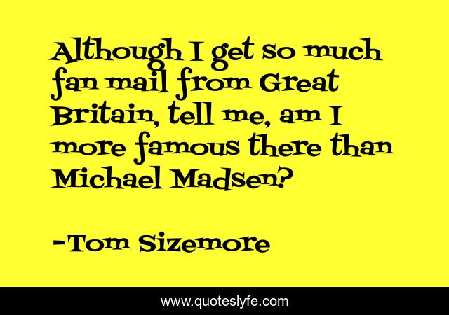 This page presents the quote "Although I get so much fan mail from Great Britain, tell me, am I more famous there than Michael Madsen?". Author of this quote is Tom Sizemore. This quote is about me, great, fan,.