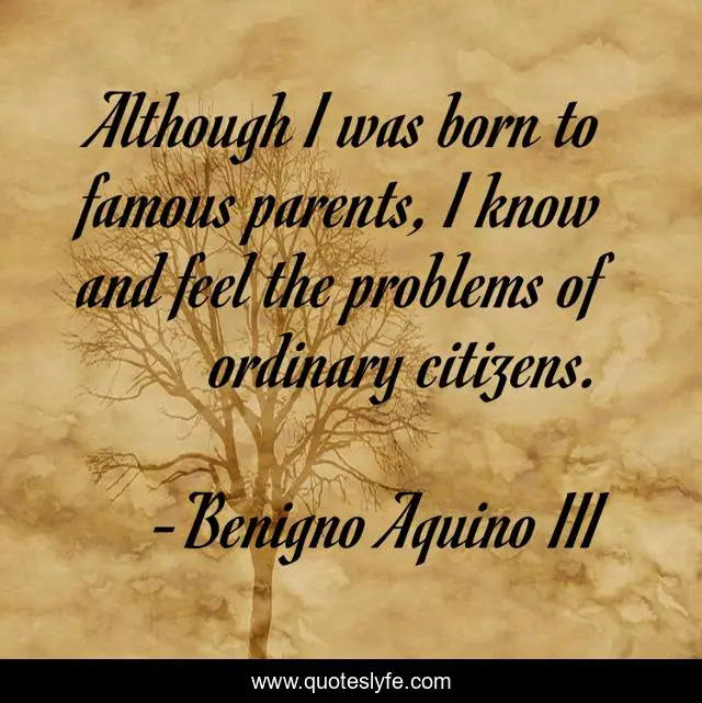 This page presents the quote "Although I was born to famous parents, I know and feel the problems of ordinary citizens.". Author of this quote is Benigno Aquino III. This quote is about parents, problems,.