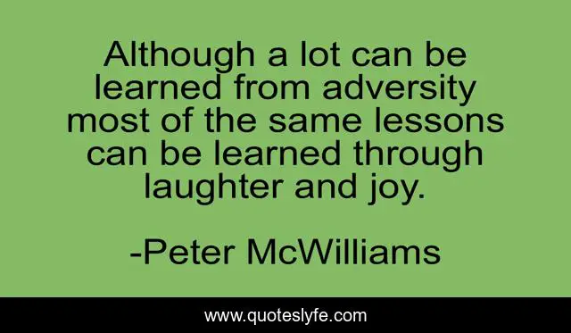 This page presents the quote "Although a lot can be learned from adversity most of the same lessons can be learned through laughter and joy.". Author of this quote is Peter McWilliams. .