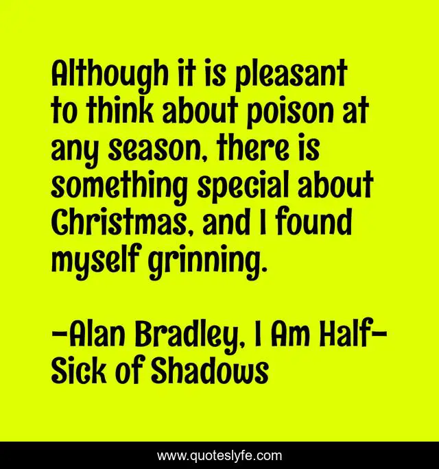 This page presents the quote "Although it is pleasant to think about poison at any season, there is something special about Christmas, and I found myself grinning.". Author of this quote is Alan Bradley, I Am Half-Sick of Shadows. This quote is about humor, christmas, poison, holidays,.