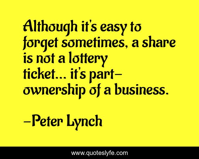 This page presents the quote "Although it's easy to forget sometimes, a share is not a lottery ticket... it's part-ownership of a business.". Author of this quote is Peter Lynch. This quote is about lottery, forget, easy,.