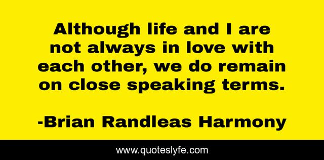 This page presents the quote "Although life and I are not always in love with each other, we do remain on close speaking terms.". Author of this quote is Brian Randleas Harmony. This quote is about humorous, enthusiasm, inspirational,.