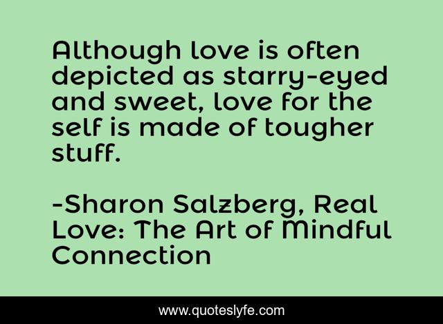 This page presents the quote "Although love is often depicted as starry-eyed and sweet, love for the self is made of tougher stuff.". Author of this quote is Sharon Salzberg, Real Love: The Art of Mindful Connection. This quote is about connection, love, self-love, affection,.