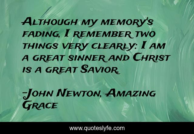 This page presents the quote "Although my memory's fading, I remember two things very clearly: I am a great sinner and Christ is a great Savior.". Author of this quote is John Newton, Amazing Grace. This quote is about biographical, inspirational, enthusiasm,.