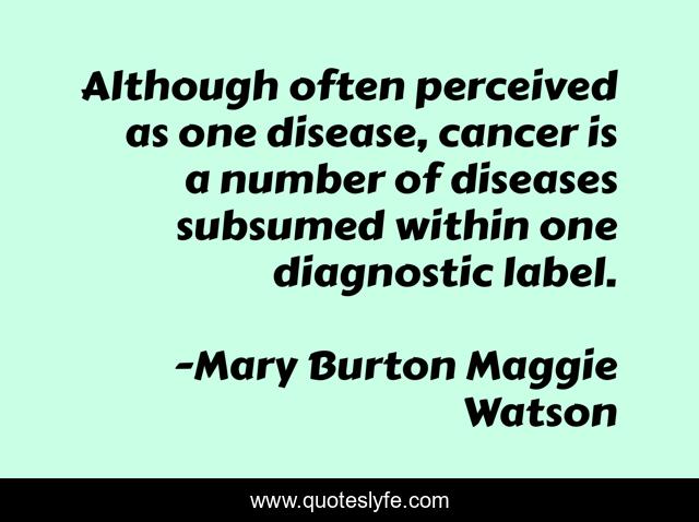 This page presents the quote "Although often perceived as one disease, cancer is a number of diseases subsumed within one diagnostic label.". Author of this quote is Mary Burton Maggie Watson. .