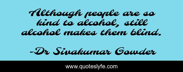 This page presents the quote "Although people are so kind to alcohol, still alcohol makes them blind.". Author of this quote is Dr Sivakumar Gowder. .