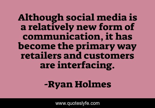 This page presents the quote "Although social media is a relatively new form of communication, it has become the primary way retailers and customers are interfacing.". Author of this quote is Ryan Holmes. This quote is about social media, media, new,.