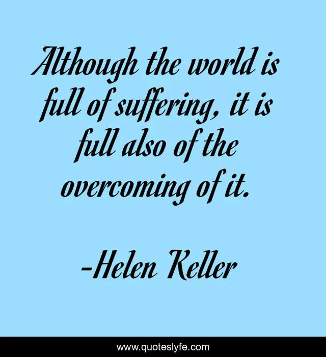 "Helen Keller Quotes." Quoteslyfe.com, 2025. Fri. 05 Dec. 2025. <https://www.quoteslyfe.com/quote/Although-the-world-is-full-of-suffering-35946>.
