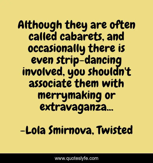 "Lola Smirnova, Twisted Quotes." Quoteslyfe.com, 2025. Fri. 05 Dec. 2025. <https://www.quoteslyfe.com/quote/Although-they-are-often-called-cabarets-and-187212>.