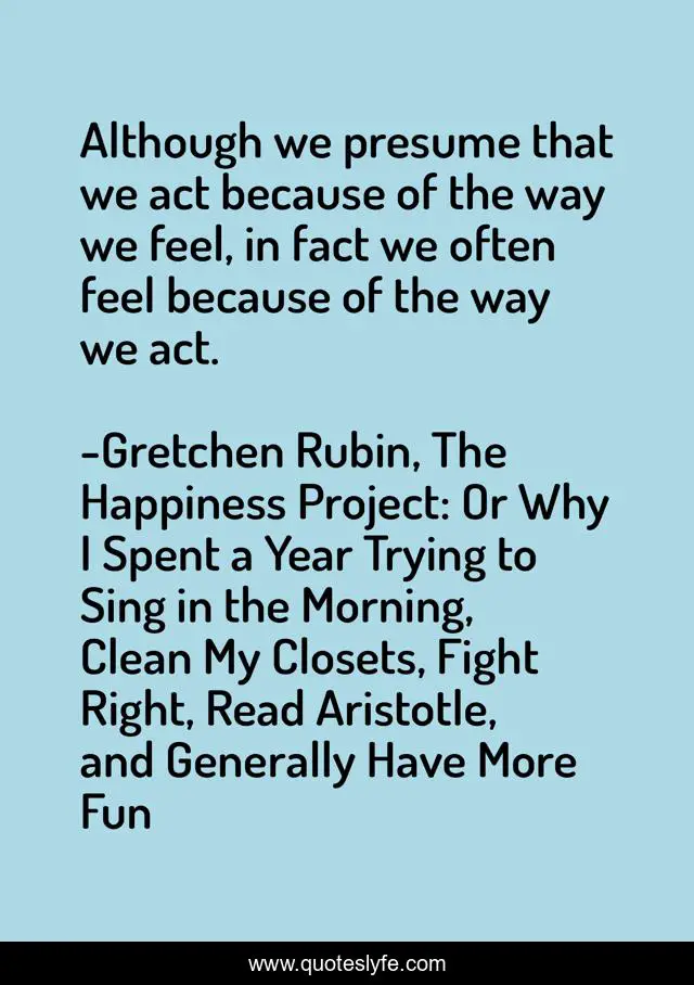 "Gretchen Rubin, The Happiness Project: Or Why I Spent a Year Trying to Sing in the Morning, Clean My Closets, Fight Right, Read Aristotle, and Generally Have More Fun Quotes." Quoteslyfe.com, 2025. Mon. 29 Dec. 2025. <https://www.quoteslyfe.com/quote/Although-we-presume-that-we-act-because-162107>.