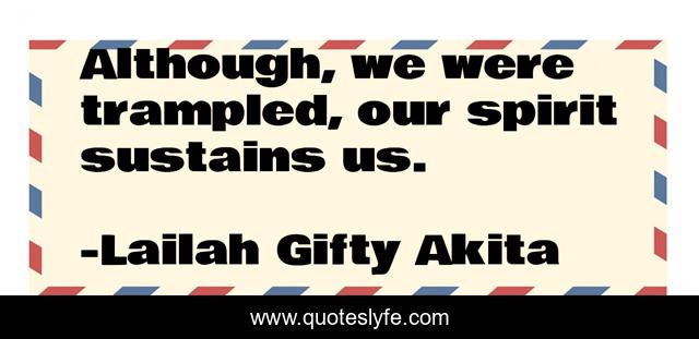 "Lailah Gifty Akita Quotes." Quoteslyfe.com, 2025. Sat. 06 Dec. 2025. <https://www.quoteslyfe.com/quote/Although-we-were-trampled-our-spirit-sustains-227260>.