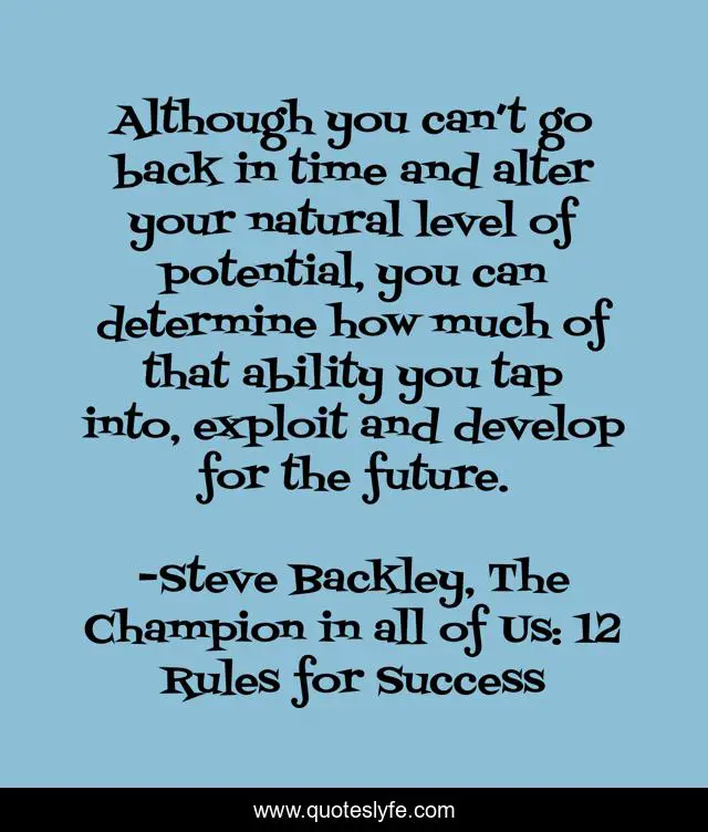 "Steve Backley, The Champion in all of Us: 12 Rules for Success Quotes." Quoteslyfe.com, 2025. Fri. 05 Dec. 2025. <https://www.quoteslyfe.com/quote/Although-you-can-t-go-back-in-32464>.