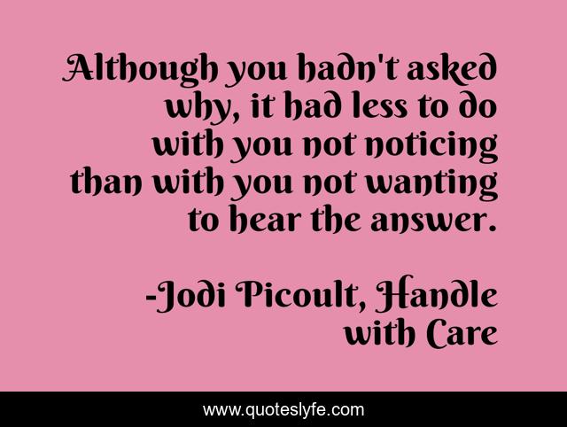 "Jodi Picoult, Handle with Care Quotes." Quoteslyfe.com, 2025. Fri. 05 Dec. 2025. <https://www.quoteslyfe.com/quote/Although-you-hadn-t-asked-why-it-45066>.