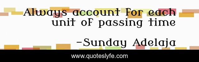 This page presents the quote "Always account for each unit of passing time". Author of this quote is Sunday Adelaja. This quote is about life, blessing, finance, money, work, job, joblessness, purpose, time,.