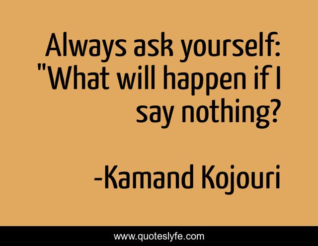 "Kamand Kojouri Quotes." Quoteslyfe.com, 2025. Fri. 05 Dec. 2025. <https://www.quoteslyfe.com/quote/Always-ask-yourself-What-will-happen-if-73347>.
