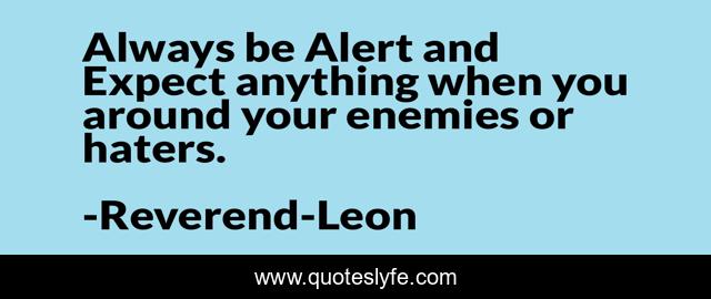 This page presents the quote "Always be Alert and Expect anything when you around your enemies or haters.". Author of this quote is Reverend-Leon. This quote is about haters, conflict, enemies,.