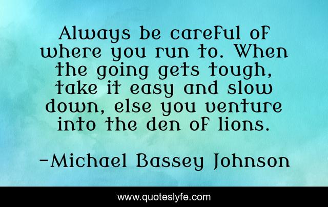 "Michael Bassey Johnson Quotes." Quoteslyfe.com, 2025. Sat. 06 Dec. 2025. <https://www.quoteslyfe.com/quote/Always-be-careful-of-where-you-run-232804>.