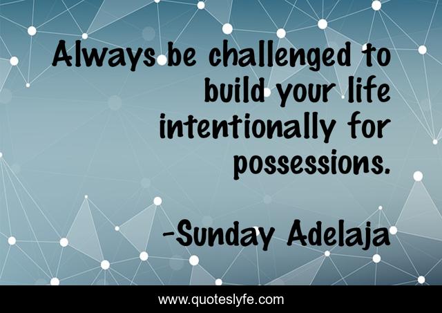 This page presents the quote "Always be challenged to build your life intentionally for possessions.". Author of this quote is Sunday Adelaja. This quote is about possession, challenge, intentional, build, life,.