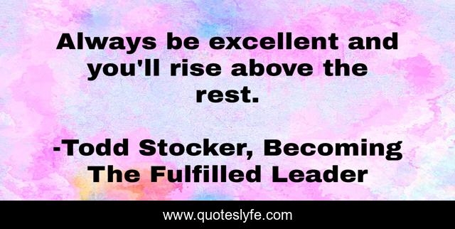 "Todd Stocker, Becoming The Fulfilled Leader Quotes." Quoteslyfe.com, 2025. Sat. 06 Dec. 2025. <https://www.quoteslyfe.com/quote/Always-be-excellent-and-you-ll-rise-84108>.