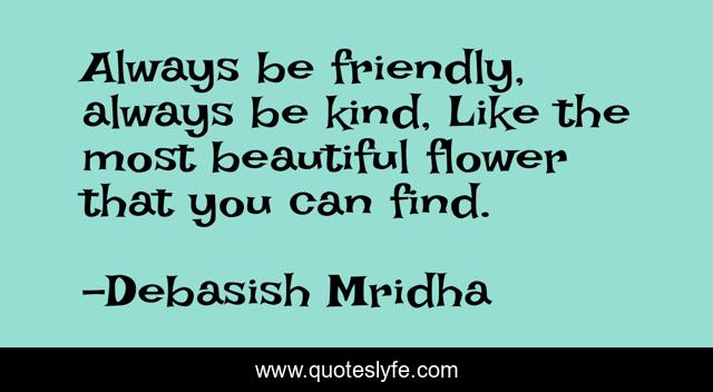 This page presents the quote "Always be friendly, always be kind, Like the most beautiful flower that you can find.". Author of this quote is Debasish Mridha. This quote is about beautiful, kind, flower, mridha, debasish, life, find, friendly, philosophy,.
