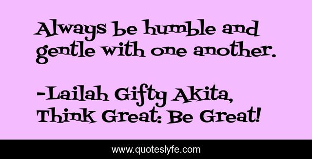 "Lailah Gifty Akita, Think Great: Be Great! Quotes." Quoteslyfe.com, 2025. Fri. 05 Dec. 2025. <https://www.quoteslyfe.com/quote/Always-be-humble-and-gentle-with-one-85486>.