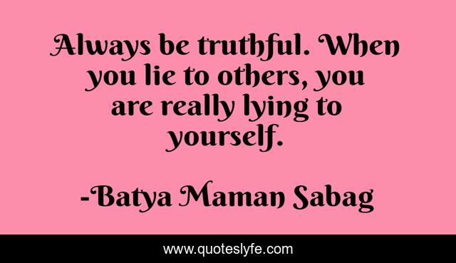 This page presents the quote "Always be truthful. When you lie to others, you are really lying to yourself.". Author of this quote is Batya Maman Sabag. This quote is about honesty, truth,.