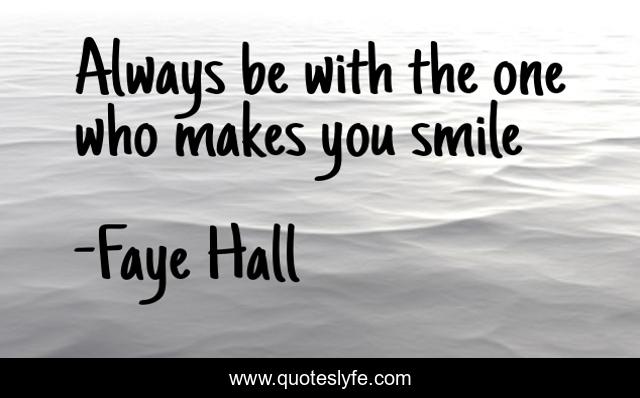 This page presents the quote "Always be with the one who makes you smile". Author of this quote is Faye Hall. This quote is about always, lovers, happiness, smile,.
