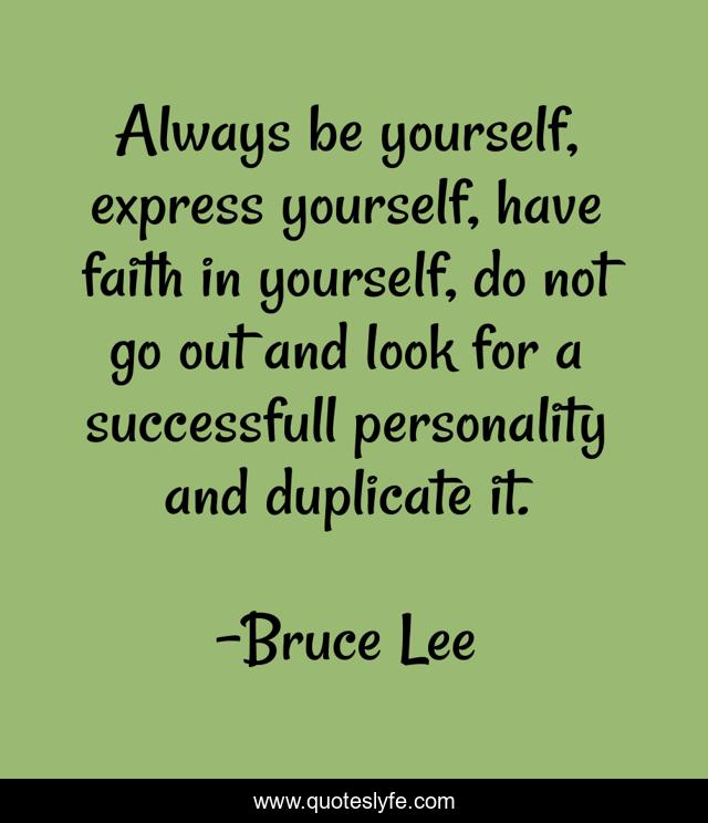 "Bruce Lee Quotes." Quoteslyfe.com, 2025. Sat. 06 Dec. 2025. <https://www.quoteslyfe.com/quote/Always-be-yourself-express-yourself-have-faith-257029>.