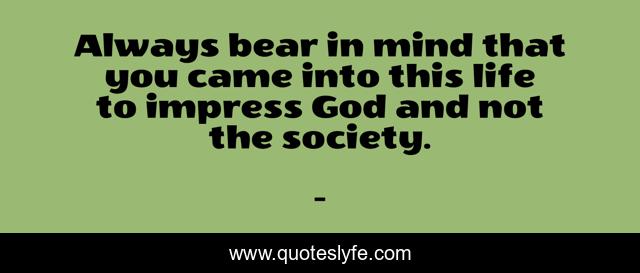 This page presents the quote "Always bear in mind that you came into this life to impress God and not the society.". Author of this quote is . This quote is about edmond-mbiaka, impress, impressing-god, the-purpose-of-life,.