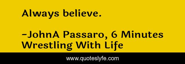 This page presents the quote "Always believe.". Author of this quote is JohnA Passaro, 6 Minutes Wrestling With Life. This quote is about life, belief,.
