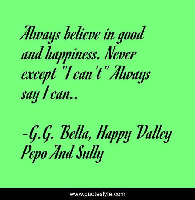 "G.G. Bella, Happy Valley Pepo And Sully Quotes." Quoteslyfe.com, 2025. Sat. 06 Dec. 2025. <https://www.quoteslyfe.com/quote/Always-believe-in-good-and-happiness-Never-99371>.