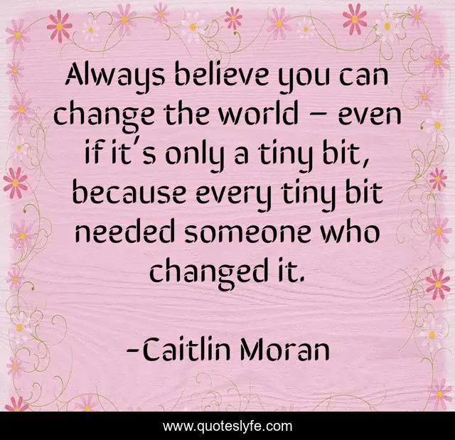 This page presents the quote "Always believe you can change the world – even if it’s only a tiny bit, because every tiny bit needed someone who changed it.". Author of this quote is Caitlin Moran. .