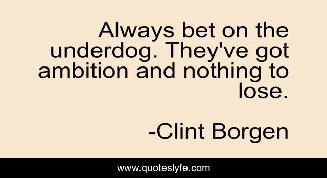 This page presents the quote "Always bet on the underdog. They've got ambition and nothing to lose.". Author of this quote is Clint Borgen. This quote is about challenges, hurdles, winning,.