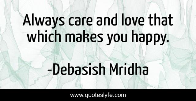 This page presents the quote "Always care and love that which makes you happy.". Author of this quote is Debasish Mridha. This quote is about always-care, love, philosophy, debasish-mridha, how-to-be-happy, quotes, inspirational, enthusiasm, debasish-mridha-m-d,.