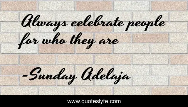 "Sunday Adelaja Quotes." Quoteslyfe.com, 2025. Tue. 09 Dec. 2025. <https://www.quoteslyfe.com/quote/Always-celebrate-people-for-who-they-are-39739>.