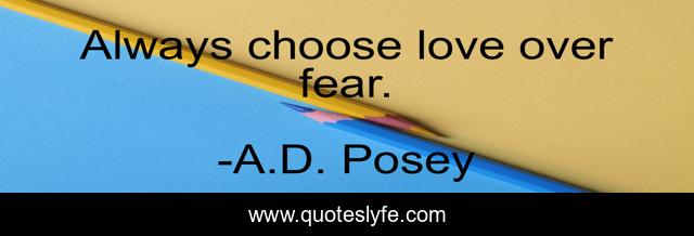 "A.D. Posey Quotes." Quoteslyfe.com, 2025. Sat. 06 Dec. 2025. <https://www.quoteslyfe.com/quote/Always-choose-love-over-fear-28154>.