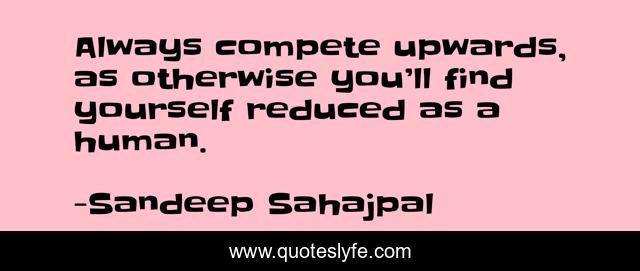 This page presents the quote "Always compete upwards, as otherwise you’ll find yourself reduced as a human.". Author of this quote is Sandeep Sahajpal. .