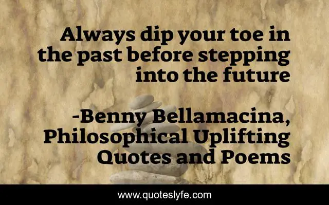 This page presents the quote "Always dip your toe in the past before stepping into the future". Author of this quote is Benny Bellamacina, Philosophical Uplifting Quotes and Poems. This quote is about educational, humour, philosophy, life, poetry, wisdom,.