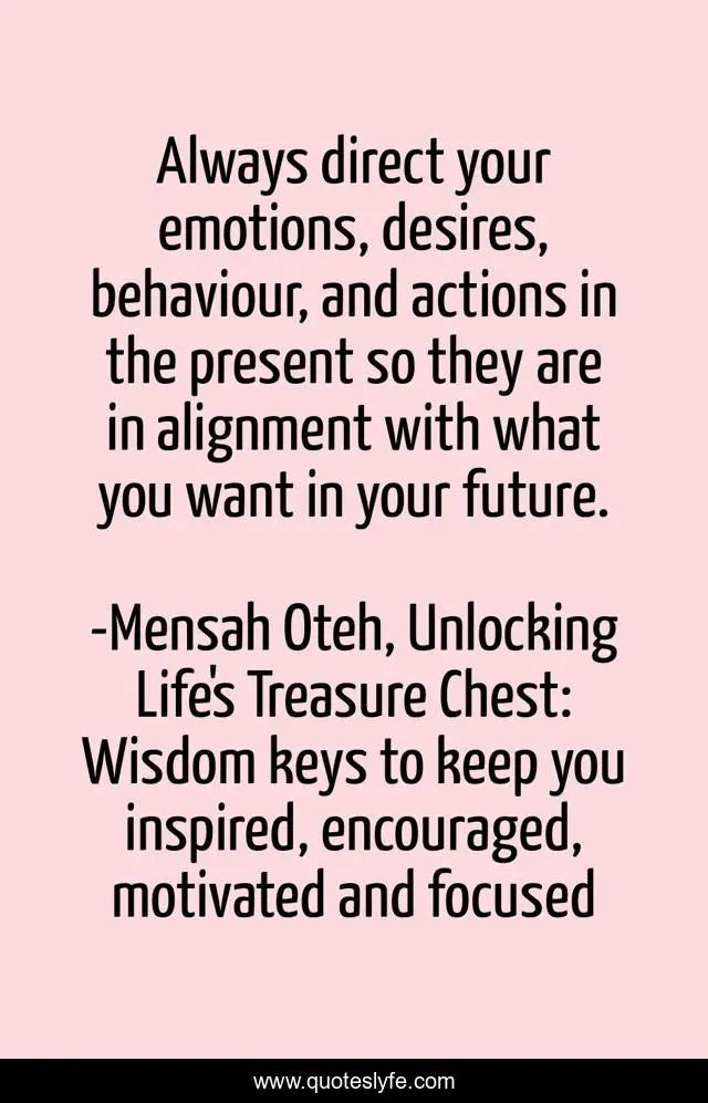 "Mensah Oteh, Unlocking Life's Treasure Chest: Wisdom keys to keep you inspired, encouraged, motivated and focused Quotes." Quoteslyfe.com, 2025. Fri. 05 Dec. 2025. <https://www.quoteslyfe.com/quote/Always-direct-your-emotions-desires-behaviour-and-15726>.