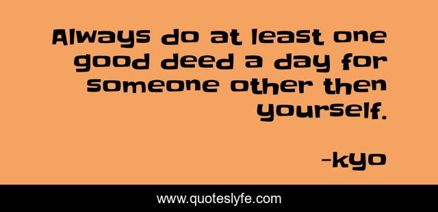 This page presents the quote "Always do at least one good deed a day for someone other then yourself.". Author of this quote is kyo. This quote is about good, deeds,.