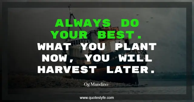 "Og Mandino Quotes." Quoteslyfe.com, 2025. Tue. 23 Dec. 2025. <https://www.quoteslyfe.com/quote/Always-do-your-best-What-you-plant-130291>.