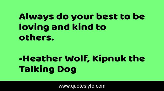 "Heather Wolf, Kipnuk the Talking Dog Quotes." Quoteslyfe.com, 2025. Sat. 06 Dec. 2025. <https://www.quoteslyfe.com/quote/Always-do-your-best-to-be-loving-136410>.